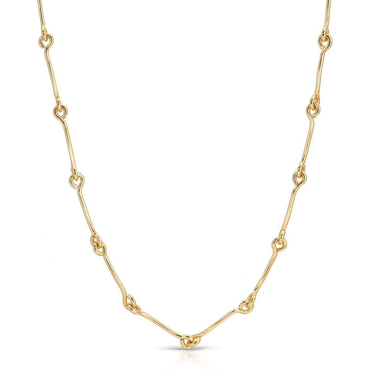 The Fortuna Chain features a unique bar-and-loop design inspired by vintage watch fobs and antique charm keepers. Sculptural and substantial, it makes a statement all on its own, yet layers effortlessly with your favorite pieces. A modern heirloom in the making.