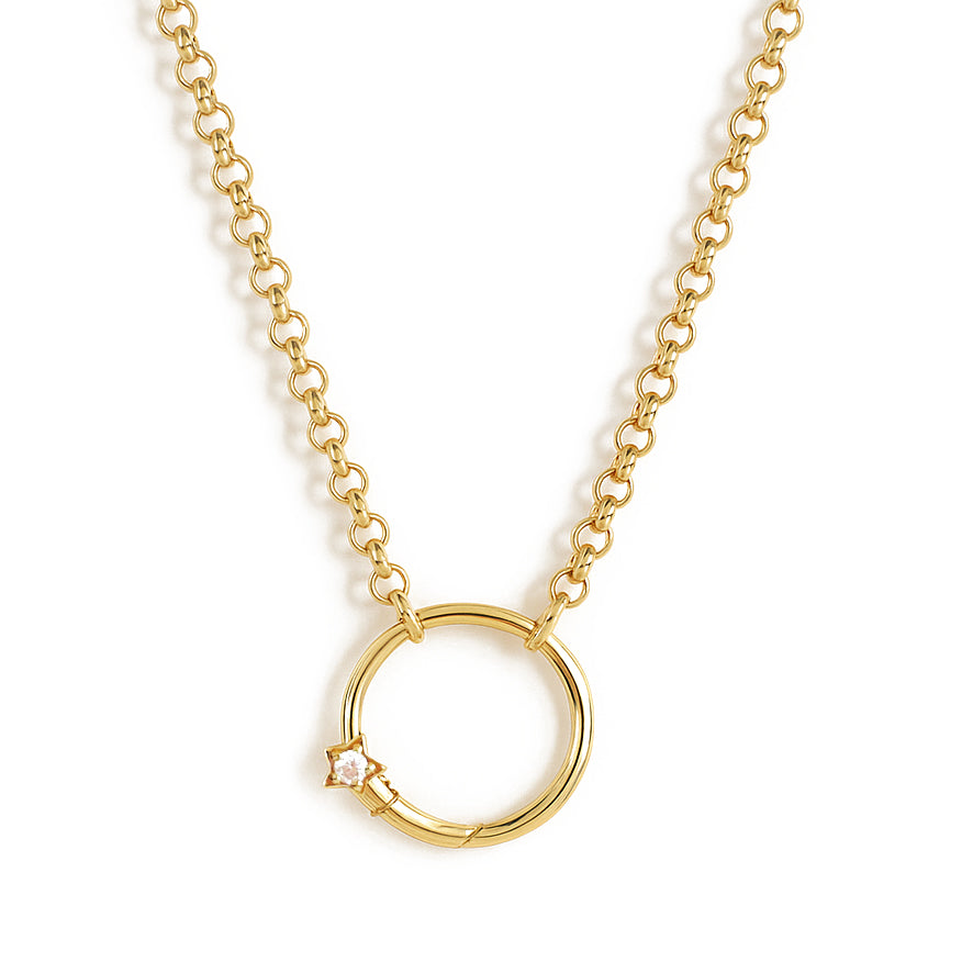 Catch a little stardust. This charm holder features a CZ-center shooting star on a modern rolo chain, with a hinged opening for effortless charm swaps. Wear it solo or layer it into your daily stack. Your lucky star, your story. ✨