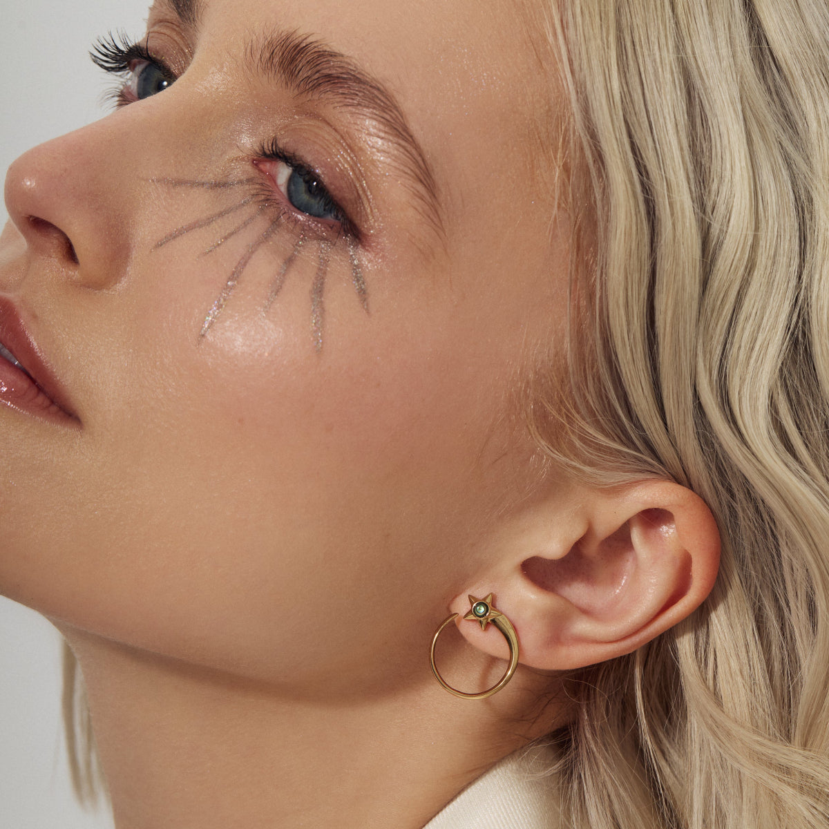 Our Lucky Star Swoosh Hoops trace the arc of a shooting star. A graceful, front-facing swoop accented with a luminous gemstone at the center. Vintage-inspired with a modern edge, they bring celestial sparkle and a hint of good-luck energy to your everyday style.