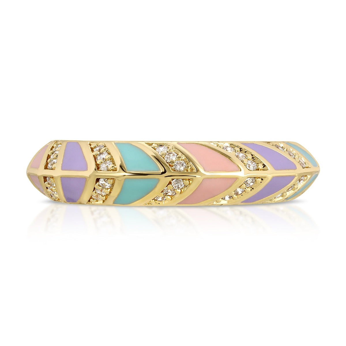 Inspired by our best selling Bowie necklace, and ode to Bowie himself. Our new Ziggy ring band adds a pop of playful color with glimmering micro pave cz stones.